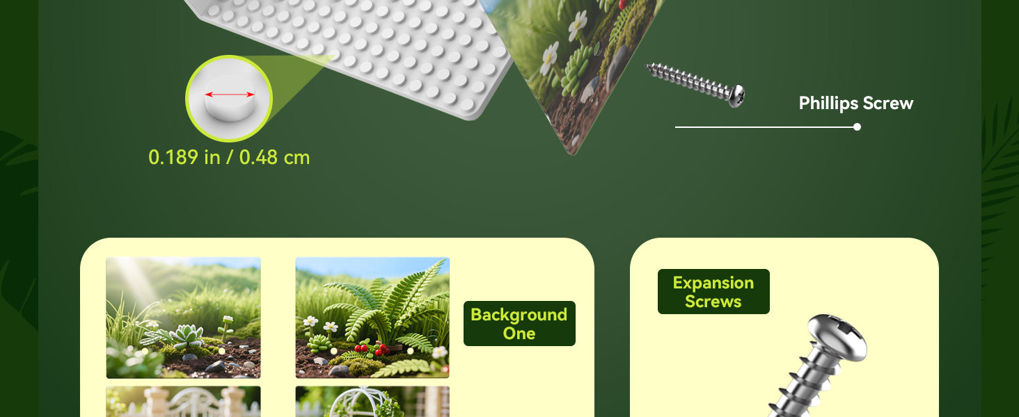 Each 5 × 5.5 inch (L × W) wall-mounted brick display shelf features a dual-sided 16 × 17 stud baseplate (0.19 in / 4.8 mm studs), compatible with all standard LEGO bricks and other compatible brands. Built for upright or upside-down builds, ensuring your brick creations stay securely in place without slipping or tilting.