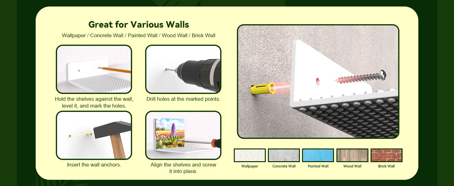 These floating shelves feature pre-drilled holes and include screws, wall anchors, and a free level tool, making setup quick and straightforward. Even those new to DIY can complete the installation with ease.